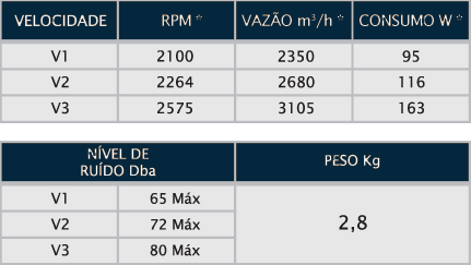 Sua vida útil é cinco vezes maior em comparação com os ventiladores de escovas. Proporcionam dessa forma, um ótimo desempenho com baixa manutenção.