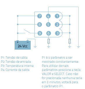 - Tensão de Entrada: 18Vcc a 32Vcc