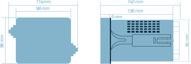 Dimensões: 98mm x 98mm x 135mm